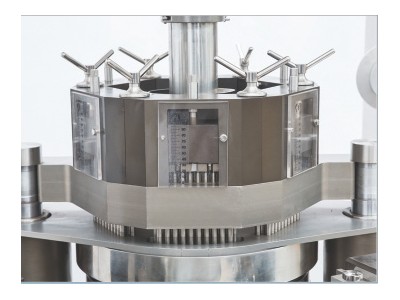 4、在药粉均布式填充机构中,异型多曲面档粉结构、侧位斜角进料结构等使药粉在储粉室内分布极为均匀,流向正确,流速畅通,达到极精确的药物装量精度。